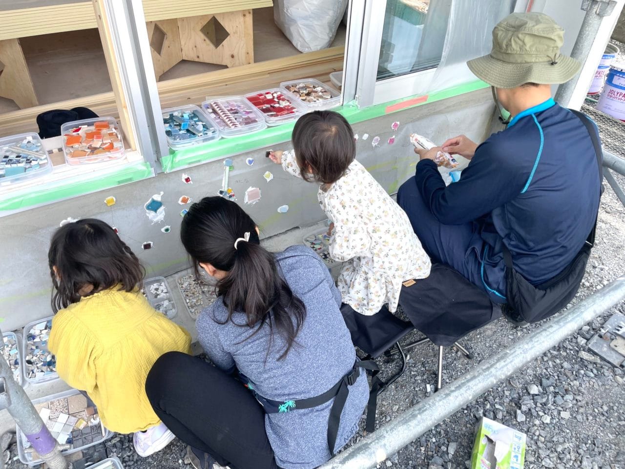 この日はワークショップ形式で、建主ご家族と一緒にタイルで建物を彩りました。
