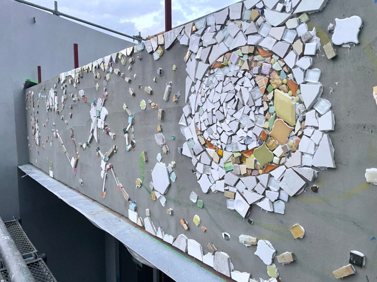 ゴールデンウイークから始まり、5月にかけてモザイクタイルの施工が進行中です。