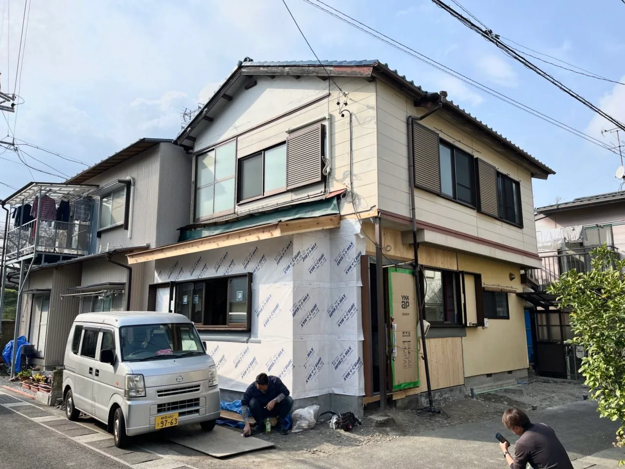 駐車スペースの確保と、建物の使い勝手の効率化を目的として、建物のボリュームを削る減築の現場をご紹介。