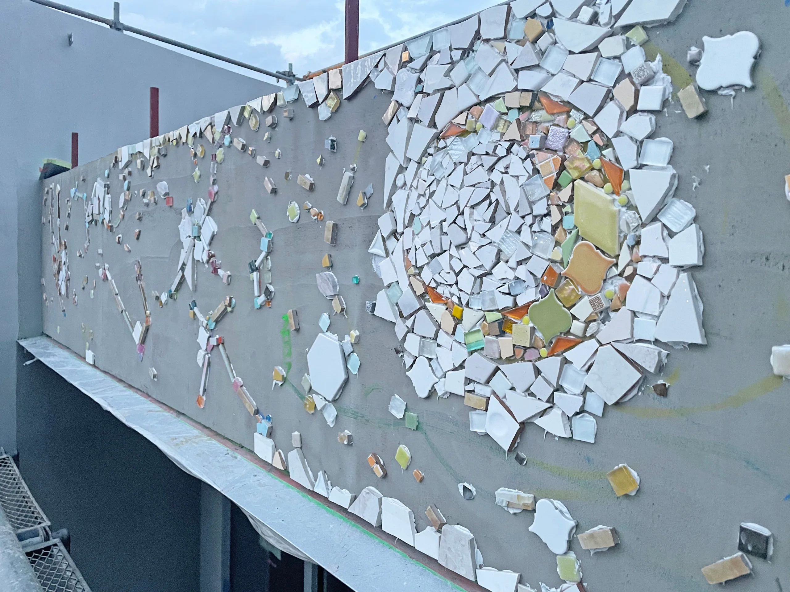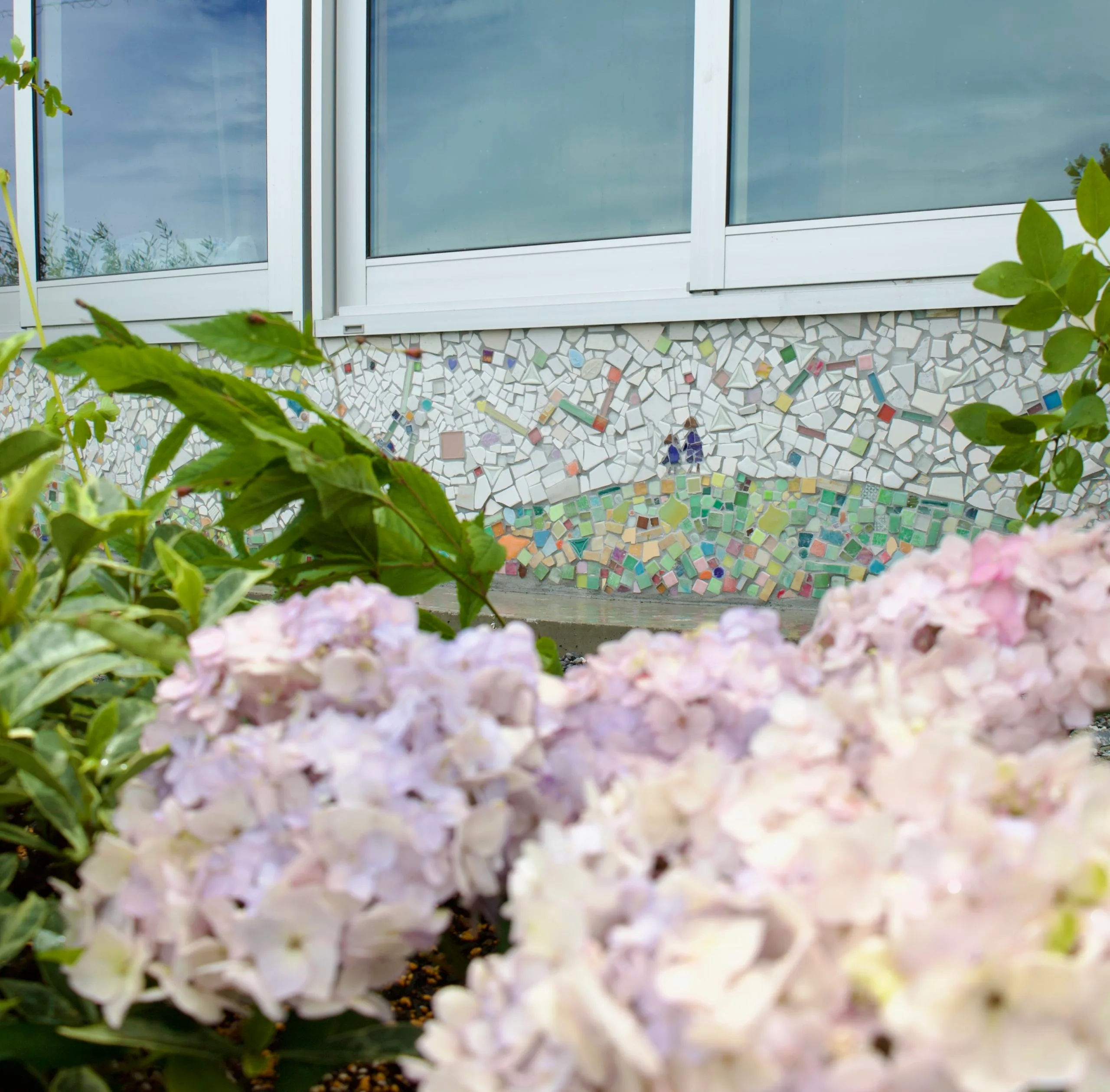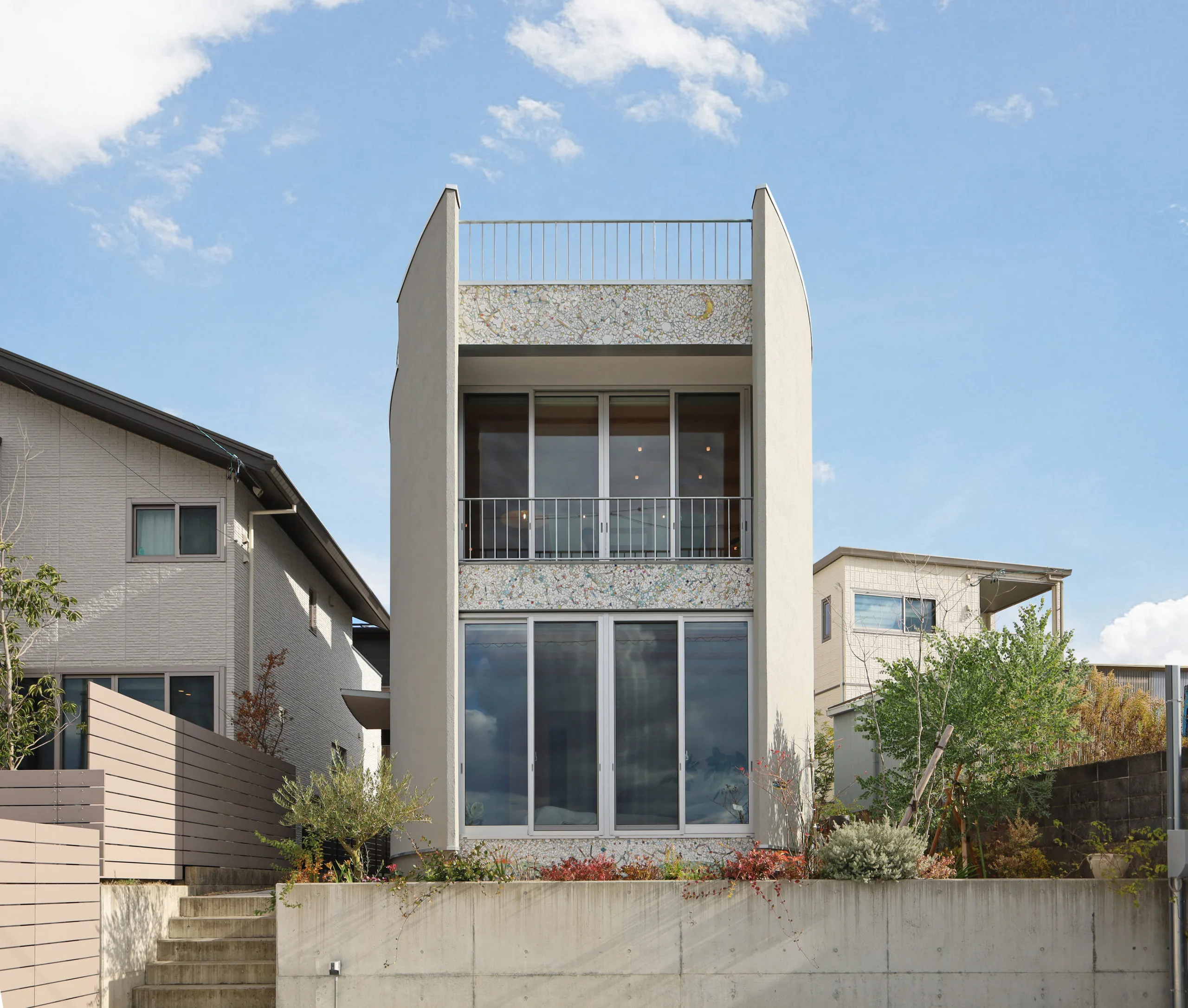 外観正面は星座をモチーフにしたモザイクタイル