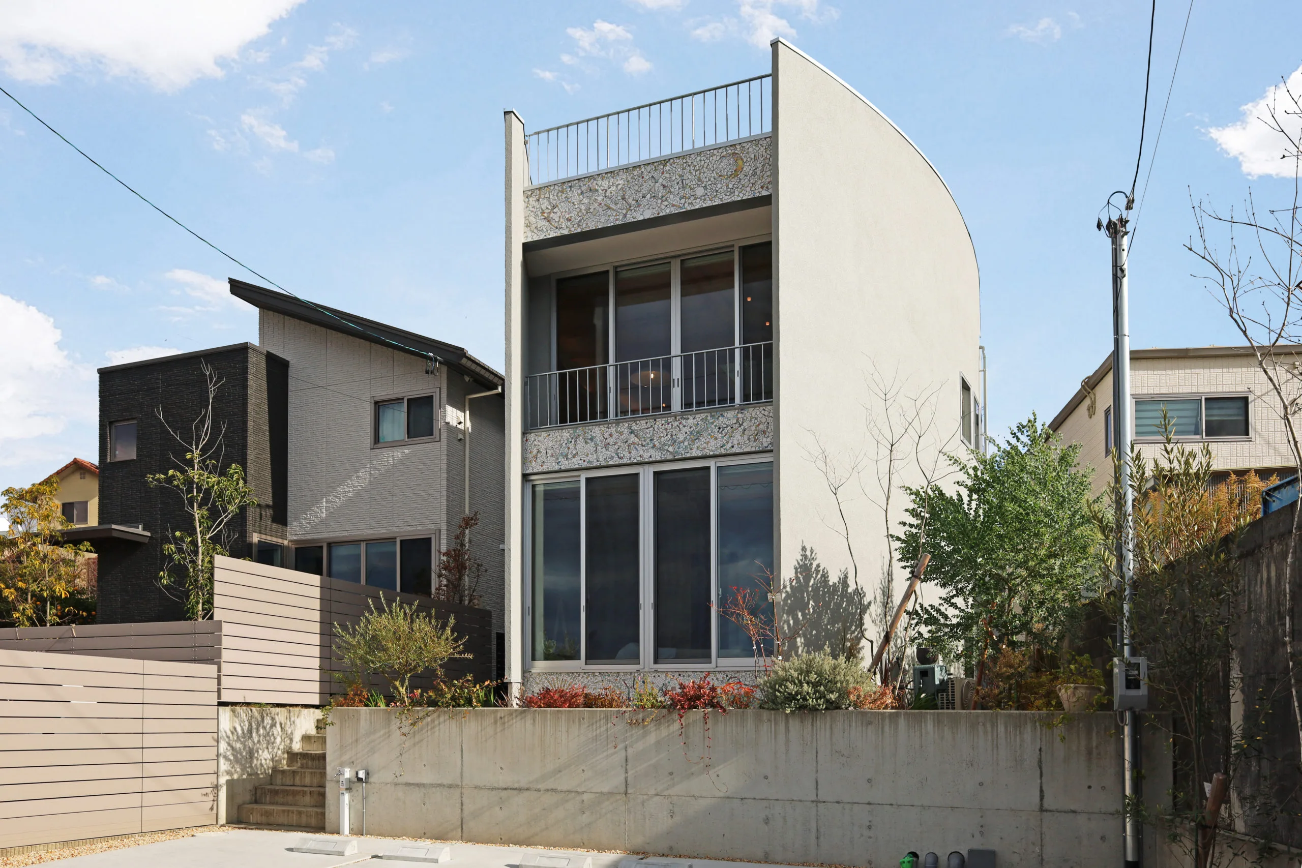 やわらかい曲線の壁で景色を包む
