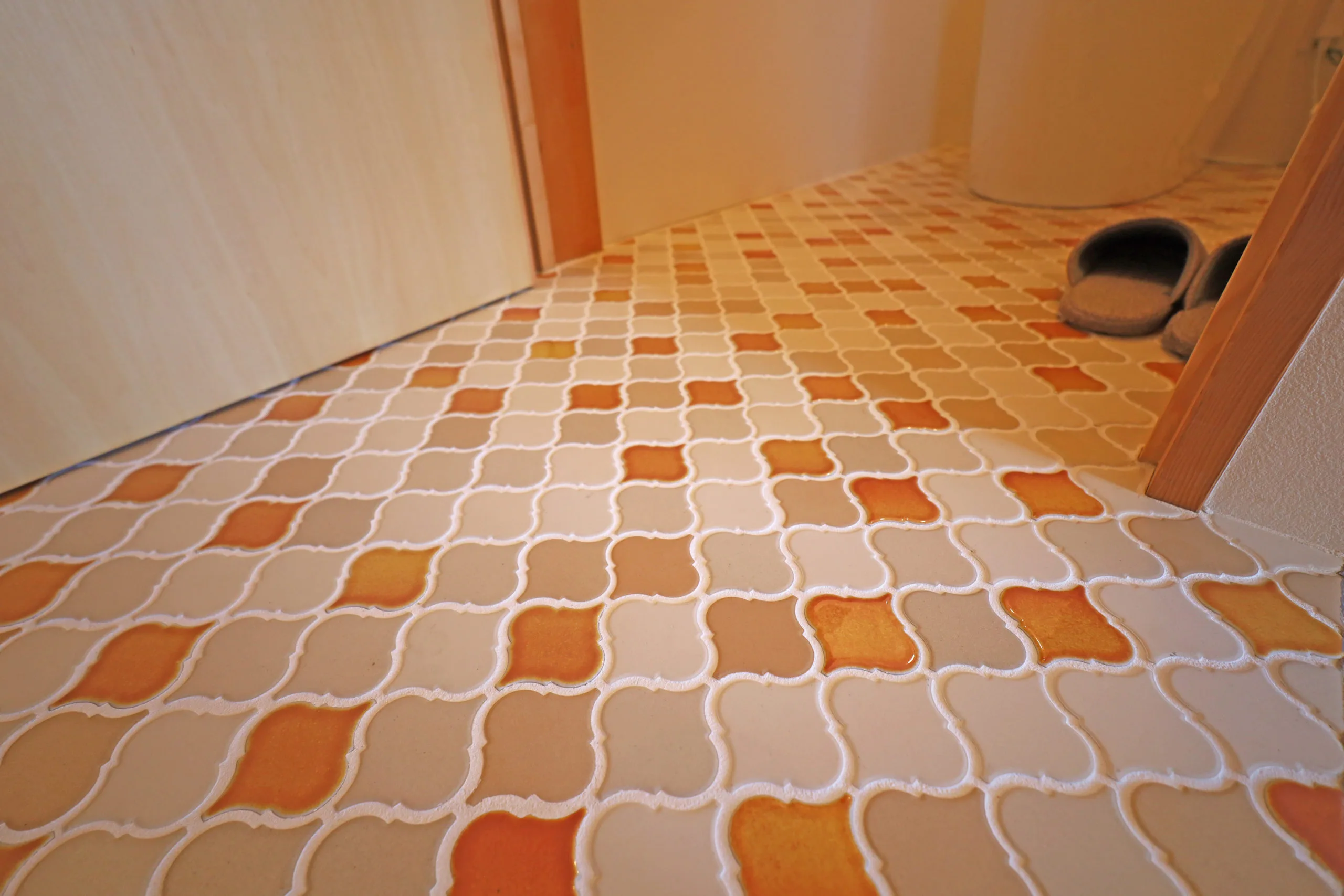 トイレの床は可愛らしい形のタイルにしました