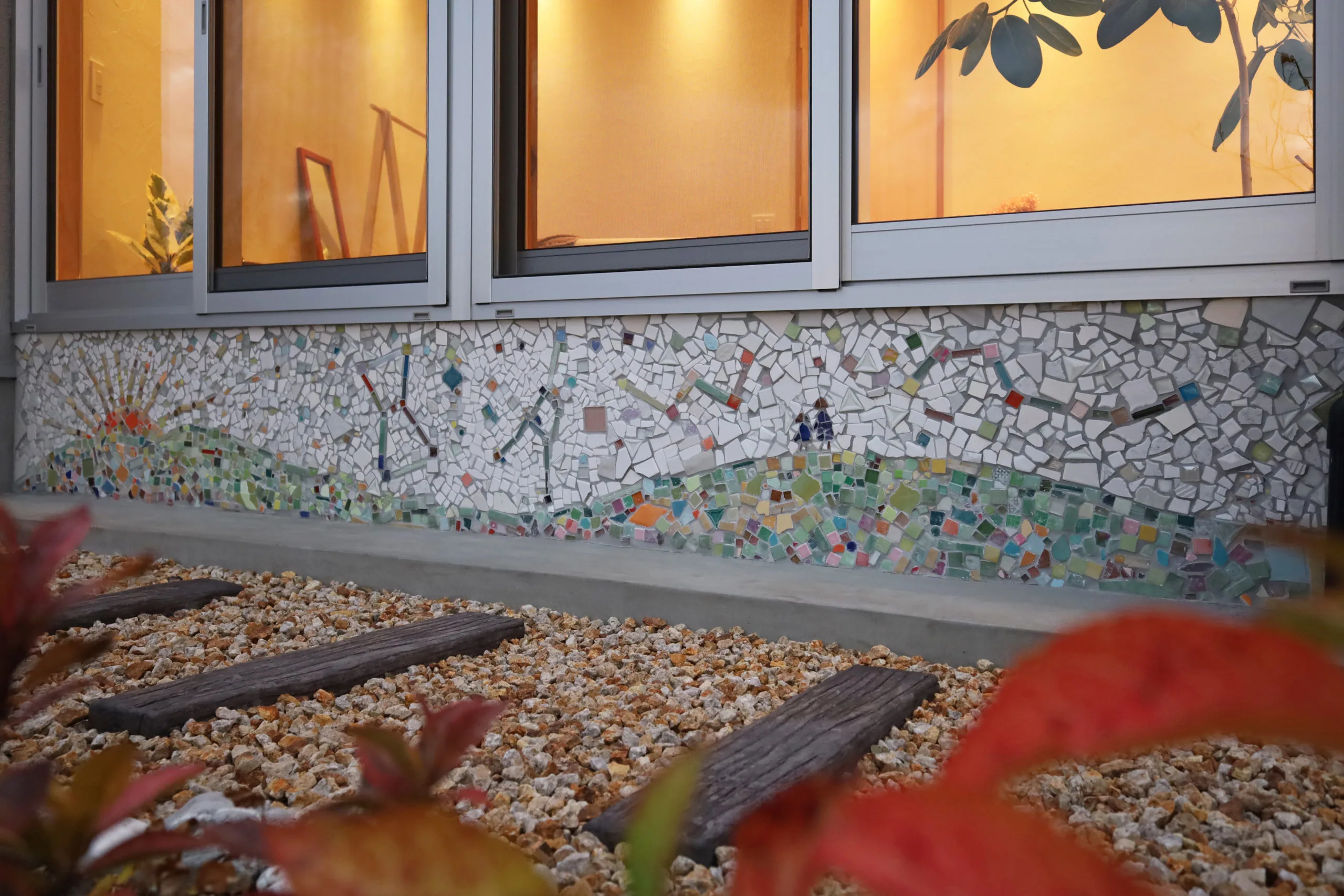 外壁のモザイクタイルはご家族と一緒にDIY♪