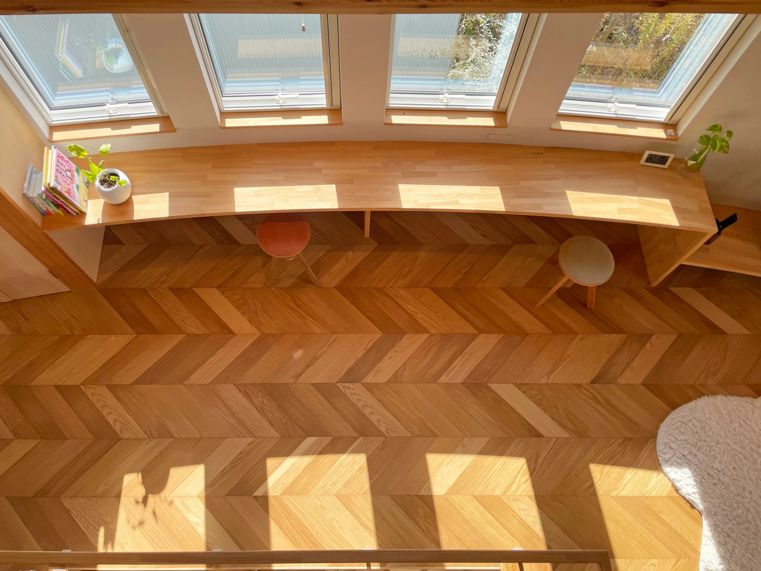 窓辺に引き出し収納を兼ねてベンチにすることで
