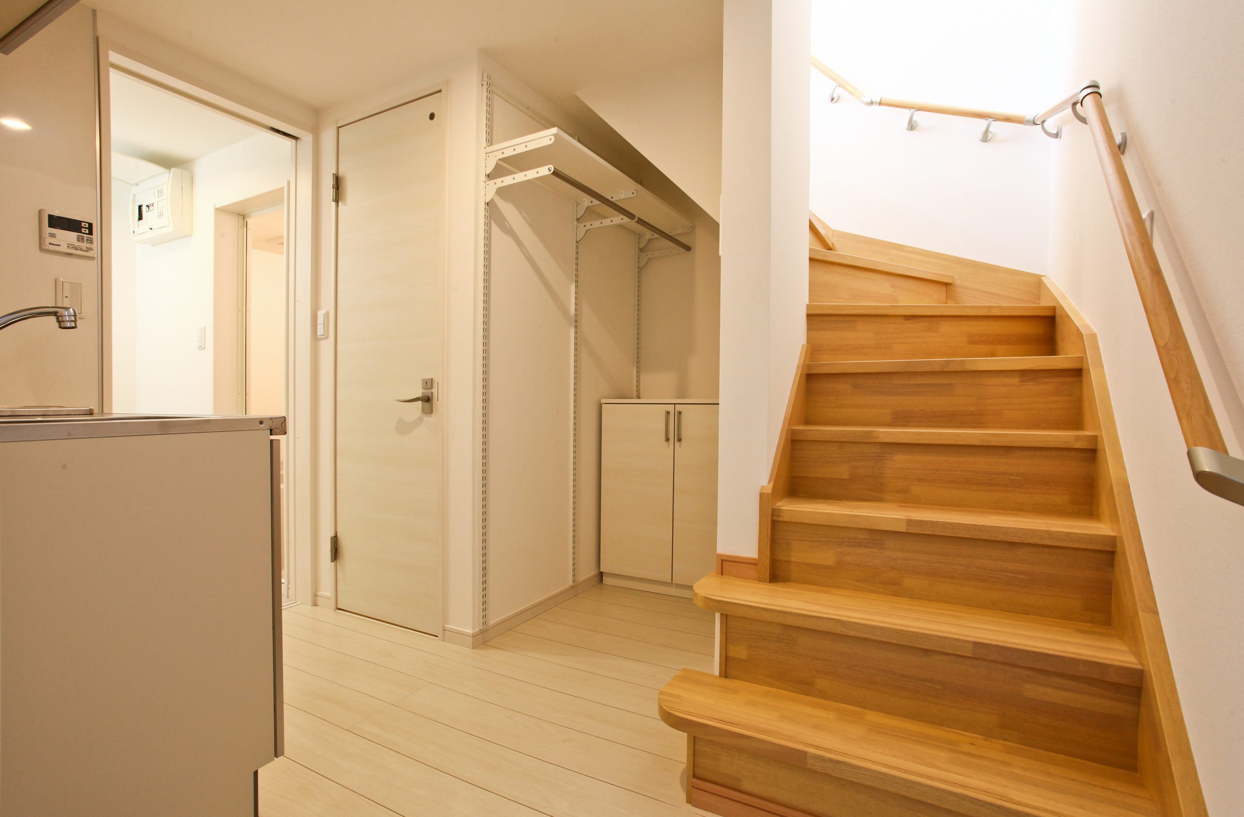 1階に玄関と水回り、2階に居室を配置したメゾネット型のワンルームアパートです